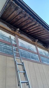 こちらは、軒天のボードが剥がれた箇所から天井に入って作られていたスズメバチの巣。